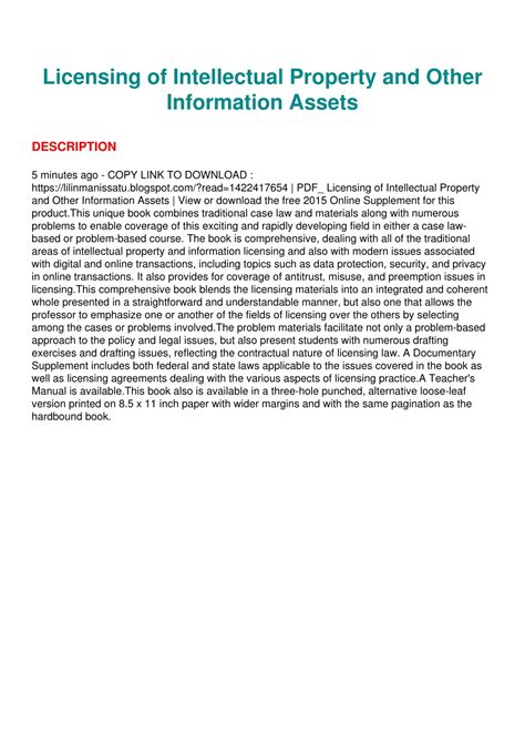 Read Licensing of Intellectual Property and Other Information Assets Library Binding Library Genesis